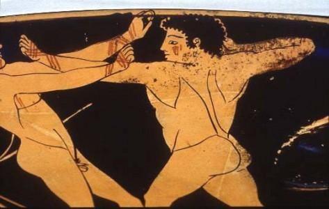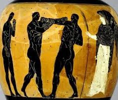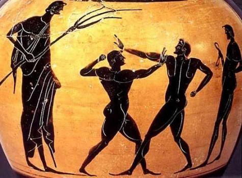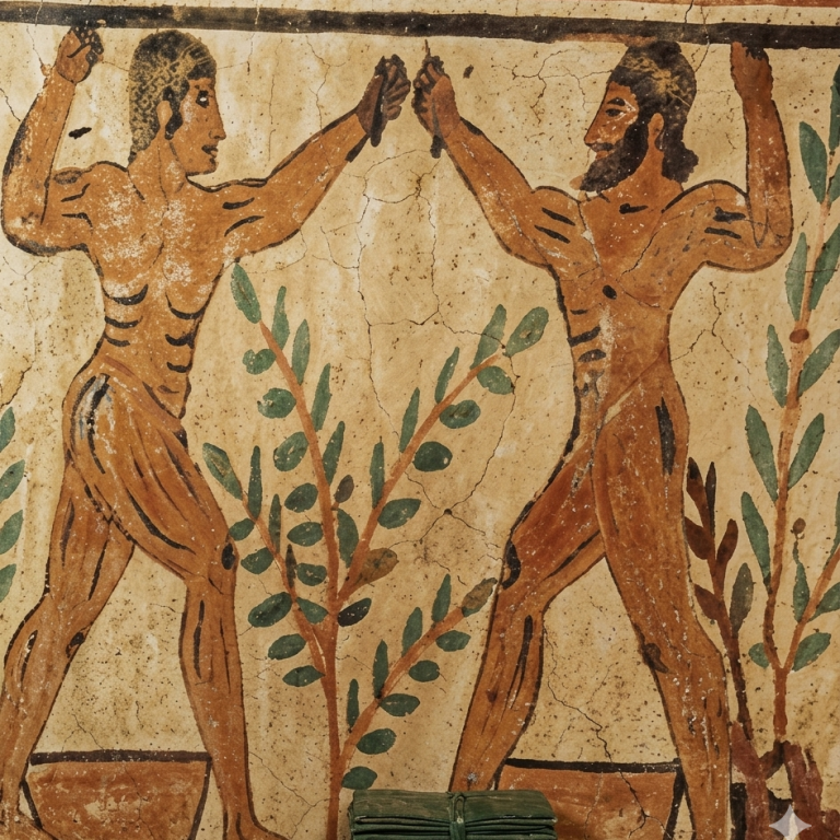 Mientras en otras culturas del Mediterráneo, el combate con los puños se integraba en contextos rituales, en el mundo griego el boxeo continuó su desarrollo dentro de un marco atlético cada vez más definido. La práctica evolucionó en paralelo, consolidando normas, figuras de control y espacios de entrenamiento. Esta progresiva formalización se refleja con claridad en varias evidencias griegas de finales del periodo arcaico y comienzos del clásico, donde el pugilato aparece representado con mayor precisión técnica y organizativa.